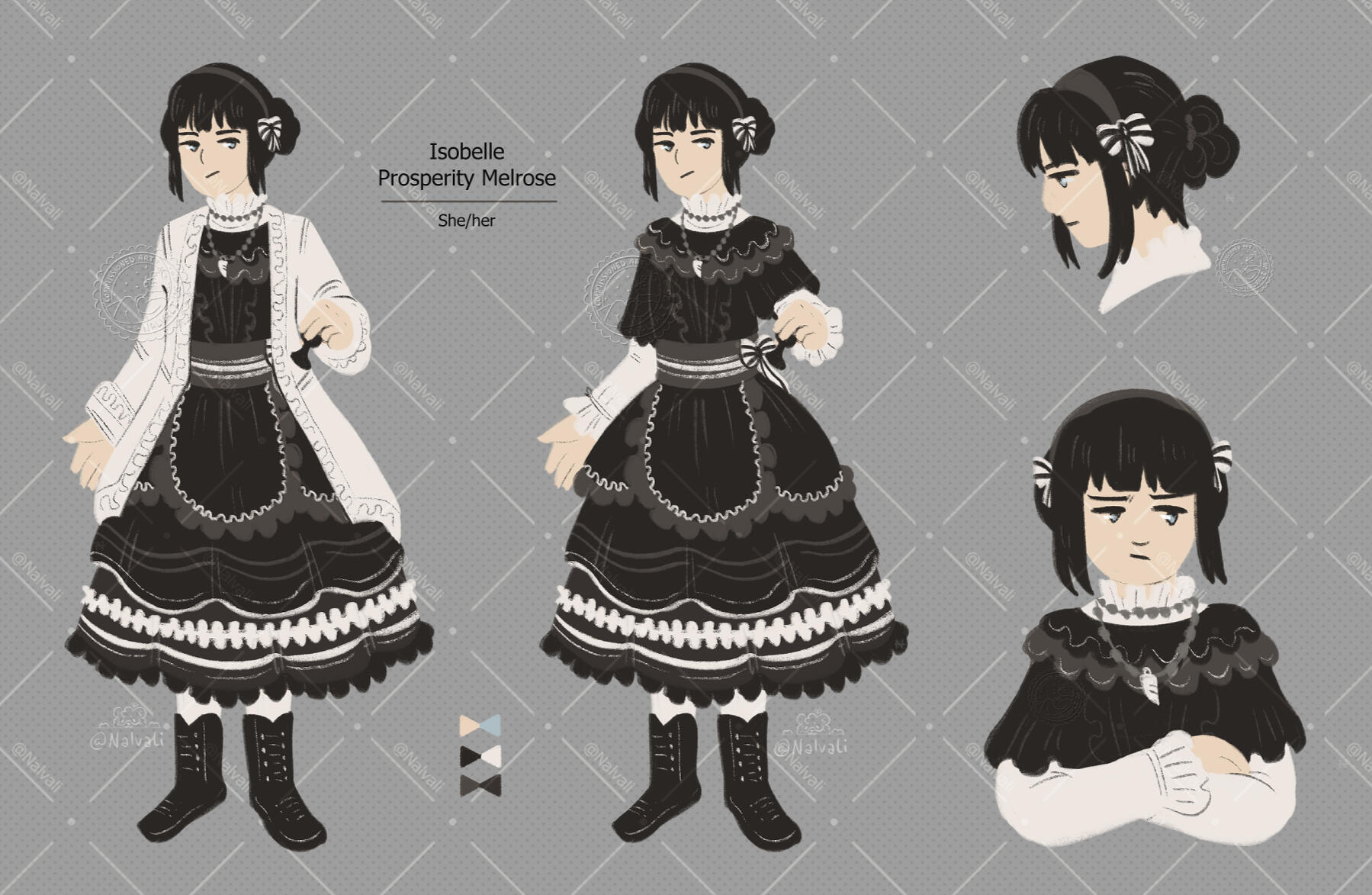 I can offer character, outfit and prop designs, and reference sheets for new or preexisting characters. Prices are for lineless with minimal shading, other styles (like lined art) can be discussed. Base price is for a singular fullbody (except sheets) with design fee included. · Semi-custom is the option if you want a OC/prop/outfit design based off a moodboard OR a few keywords, giving me artistic freedom, no revisions.