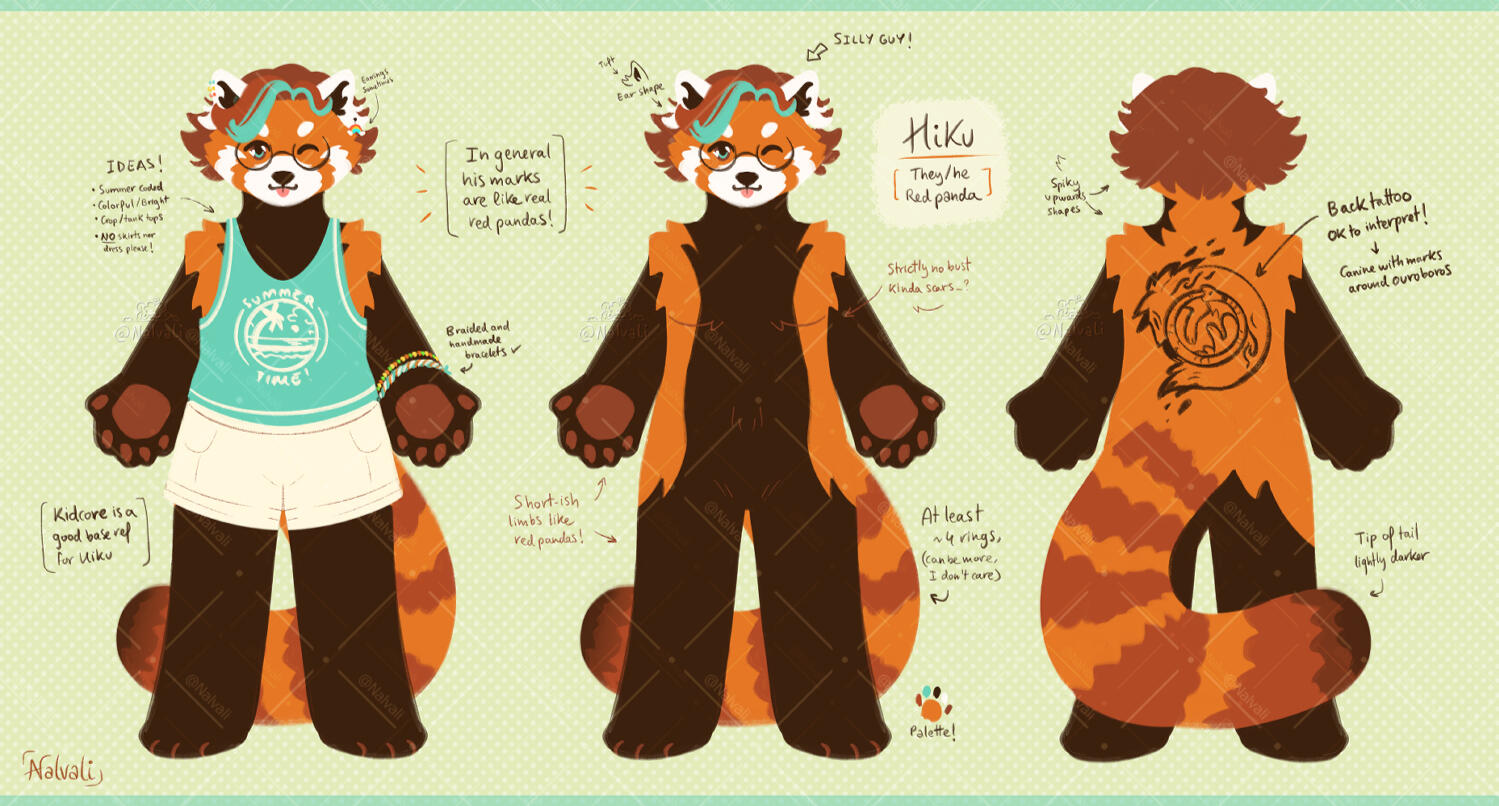 - SFW nude references (for adult characters) like Hiku's ref (red panda)